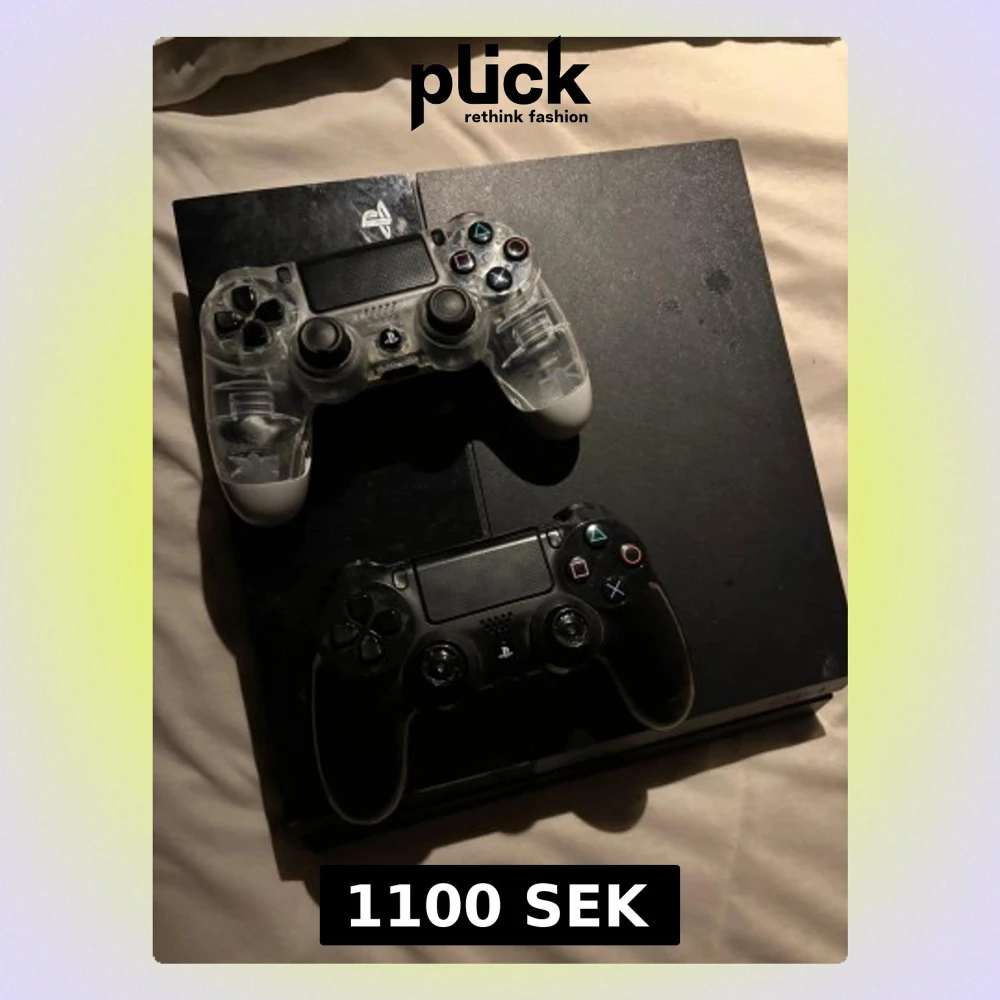 Säljer en PlayStation 4 med två original DualShock 4 kontroller (en svart och en transparent). Konsolen och kontrollerna är i bra skick med mindre yttre slitage. Perfekt för spelkvällar och multiplayer. Allt fungerar som det ska. Kan göra det billigare utan kontroller sladdar ingår