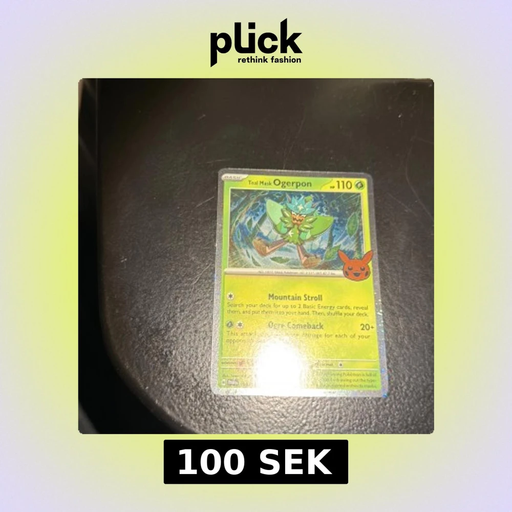 En cool och glittrig Pokémonkort med Teal Mask Ogerpon! Perfekt för samlare och fans av Pokémon. Kortet har 110 HP och unika attacker som Mountain Stroll och Ogre Comeback. Ett måste för dig som vill stärka din kortlek eller samling.