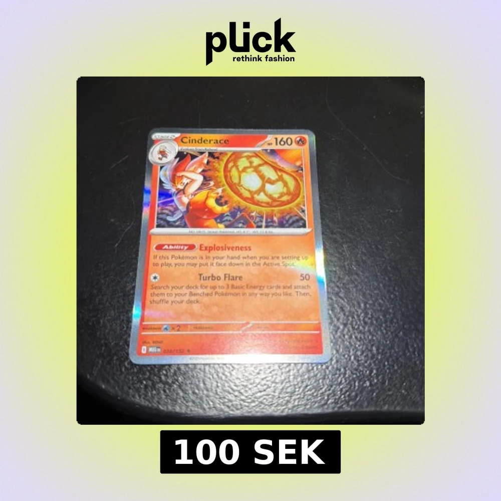 Cool och glittrande Cinderace Pokémonkort med explosiva krafter och Turbo Flare-attack! Perfekt för samlare och spelare som vill boosta sin lek med en stark och snygg karaktär. Ett måste för alla Pokémon-fans som gillar action och strategi.