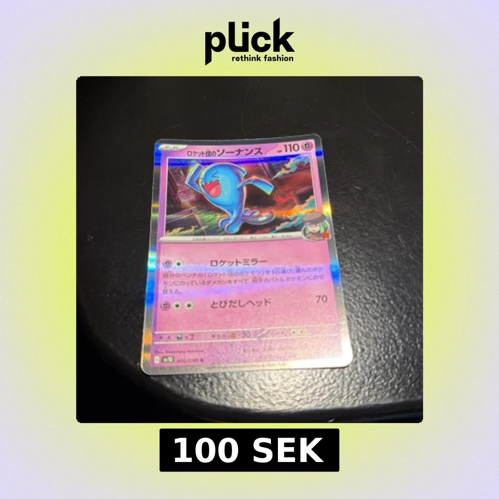 Cool och glittrande japansk Pokémon-samlarbild med Wobbuffet från Team Rocket! Perfekt för dig som älskar Pokémon och vill ha något unikt i din samling. Kortet har färgstark design och är ett måste för fans av trading cards och anime.