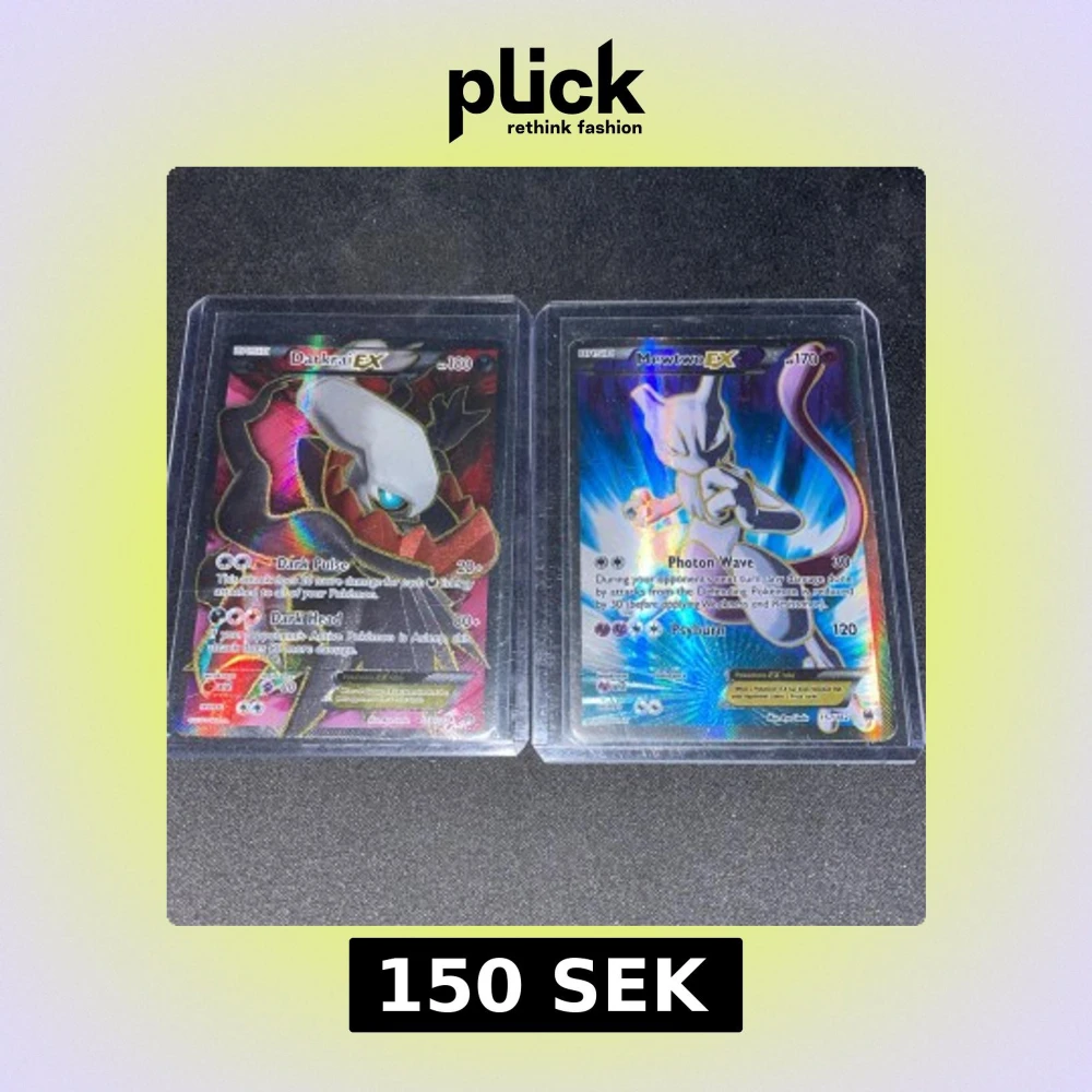 Två coola Pokémon EX-kort: Darkrai EX och Mewtwo EX! Perfekta för samlare och fans av Pokémon. Korten har snygg holografisk design och är skyddade i plastfickor. Ett måste för dig som vill ta din samling till nästa nivå!