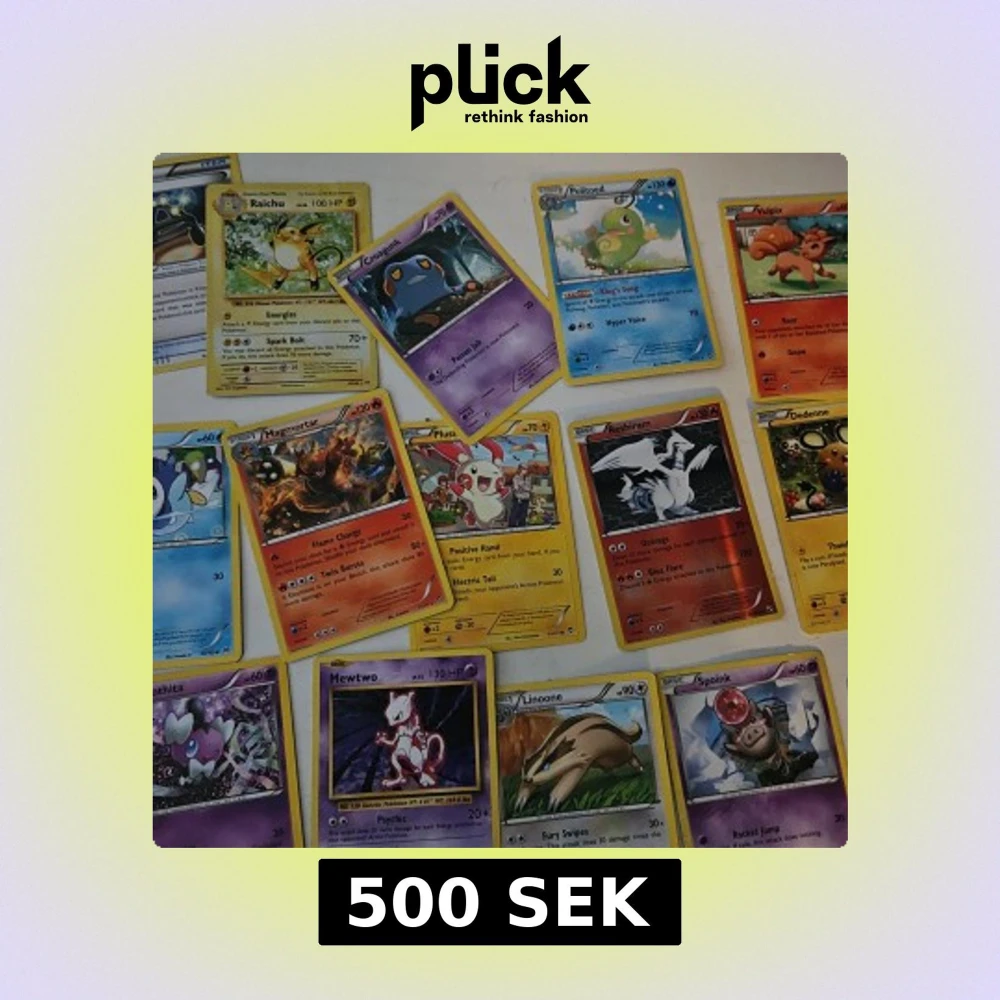 Säljer en samling Pokémonkort med blandade karaktärer som Mewtwo, Raichu, Magmortar, Plusle, Reshiram, Piplup, Gothita, Linoone, Spoink, Machop, Dedenne, Politoed och fler. Färgglada kort med olika motiv och energityper. Perfekt för samlare eller Pokémonfans och en mewtwo trading card game pärm!