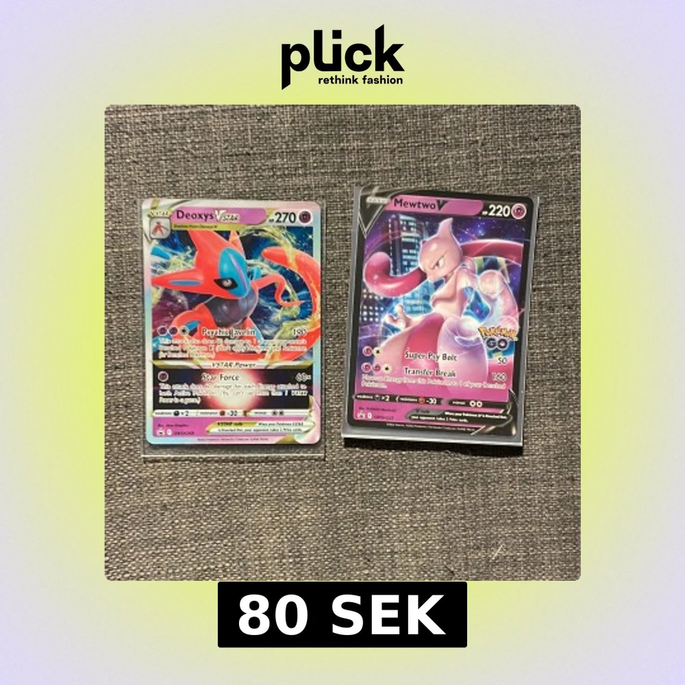 Två coola Pokémon-kort med Deoxys VSTAR och Mewtwo V! Perfekt för dig som samlar eller spelar Pokémon TCG. Korten har snygg design och starka attacker, och passar både nybörjare och erfarna spelare. Gör din samling ännu vassare!
