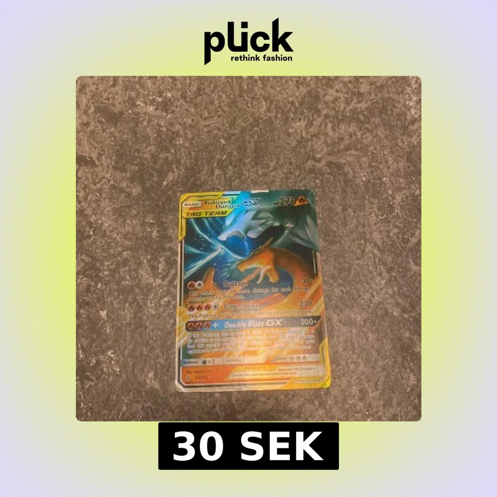 Säljer ett Pokémonkort med Reshiram & Charizard GX från TAG TEAM-serien. Kortet har en HP på 270 och innehåller attacker som Outrage, Flare Strike och Double Blaze GX. Perfekt för samlare eller spelare som vill förstärka sin kortlek.