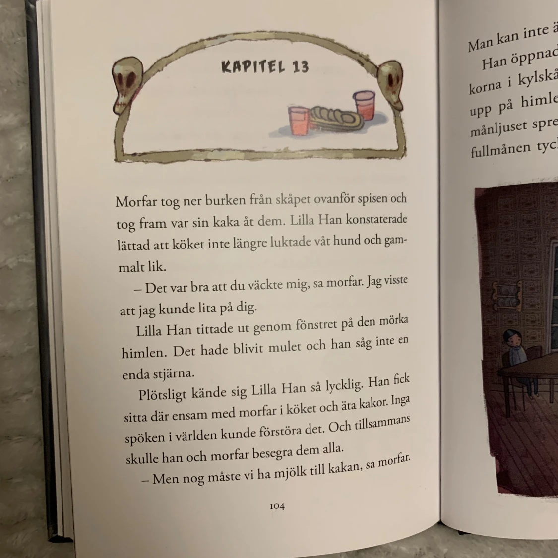 En spännande och lite läskig bok om Lilla Han som besöker sin morfar och möter mörka skuggor, spöken och monster. Perfekt för dig som gillar rysliga äventyr, men också berättelser om mod, vänskap och att övervinna sina rädslor.