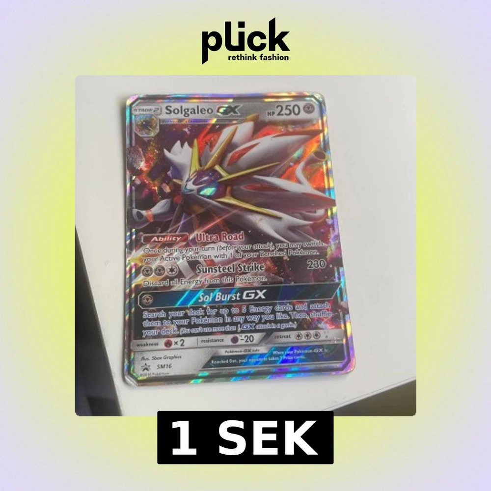 Cool och glittrig Solgaleo GX Pokémonkort! Perfekt för samlare och fans som vill boosta sin lek med en kraftfull och snygg karta. Kortet har unika attacker och en episk design som sticker ut i samlingen.