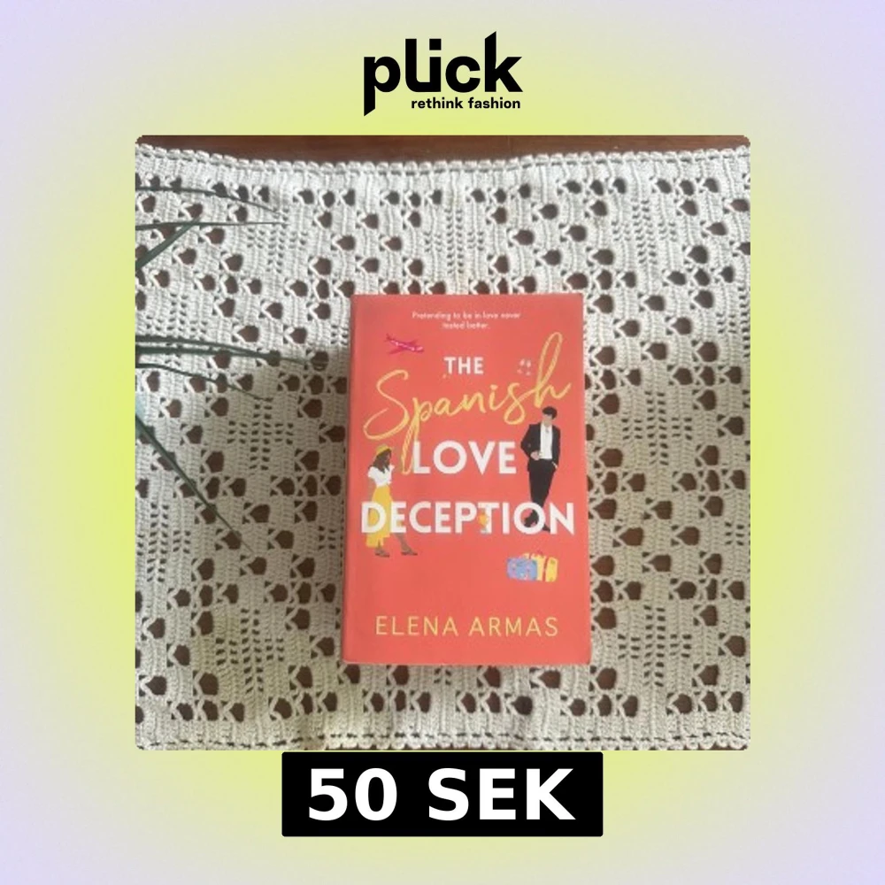 En romantisk roman på engelska med färgstark orange framsida. Omslaget har illustrationer av en kvinna och en man, samt resväskor och ett litet flygplan. Perfekt för dig som gillar kärlekshistorier med resor och humor.
