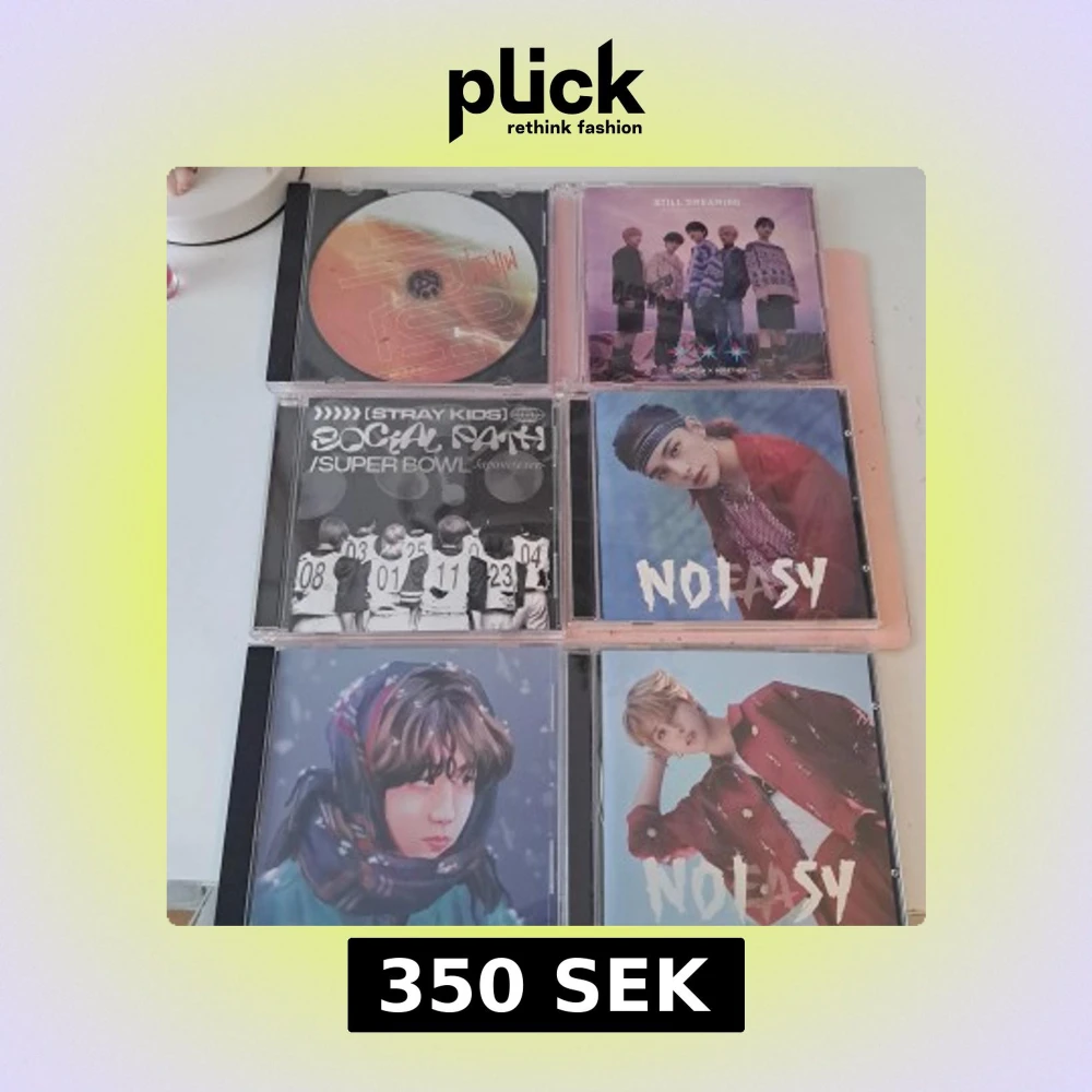 En samling av K-pop CD-skivor med olika artister och album. Perfekt för fans av genren som vill utöka sin musiksamling med fysiska kopior av sina favoritlåtar och album. 65kr styck eller 200 för alltihop🩷