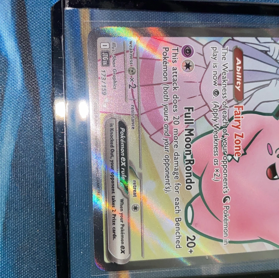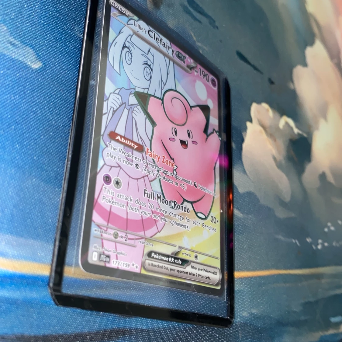 Lillies clefairy kort som går för ungefär 200kr rå kortet har en 95% chans för en psa 10 rating som skulle ta upp kortets värde till 1000kr kortet har inga fel som man kan se på bilden och jag har även lagt den i en sleeve och en toploader så inget sker med den