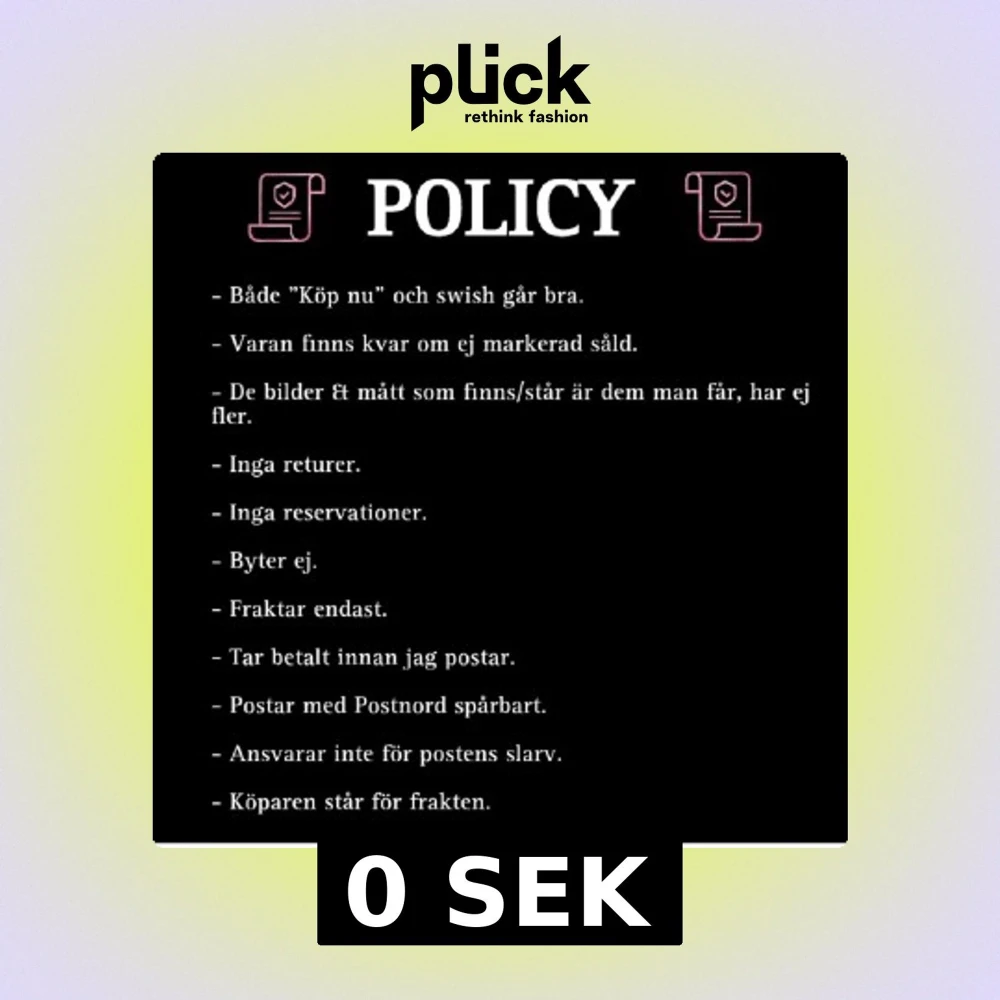 Vid köp pÄ plick appliceras alltid ett köparkydd som tÀcker eventuella fel med varan eller leveransen. För att köparskyddet ska gÀlla mÄste köpet reklameras via plick-appen inom 24 timmar frÄn att varan har mottagits. LÀs mer hÀr.