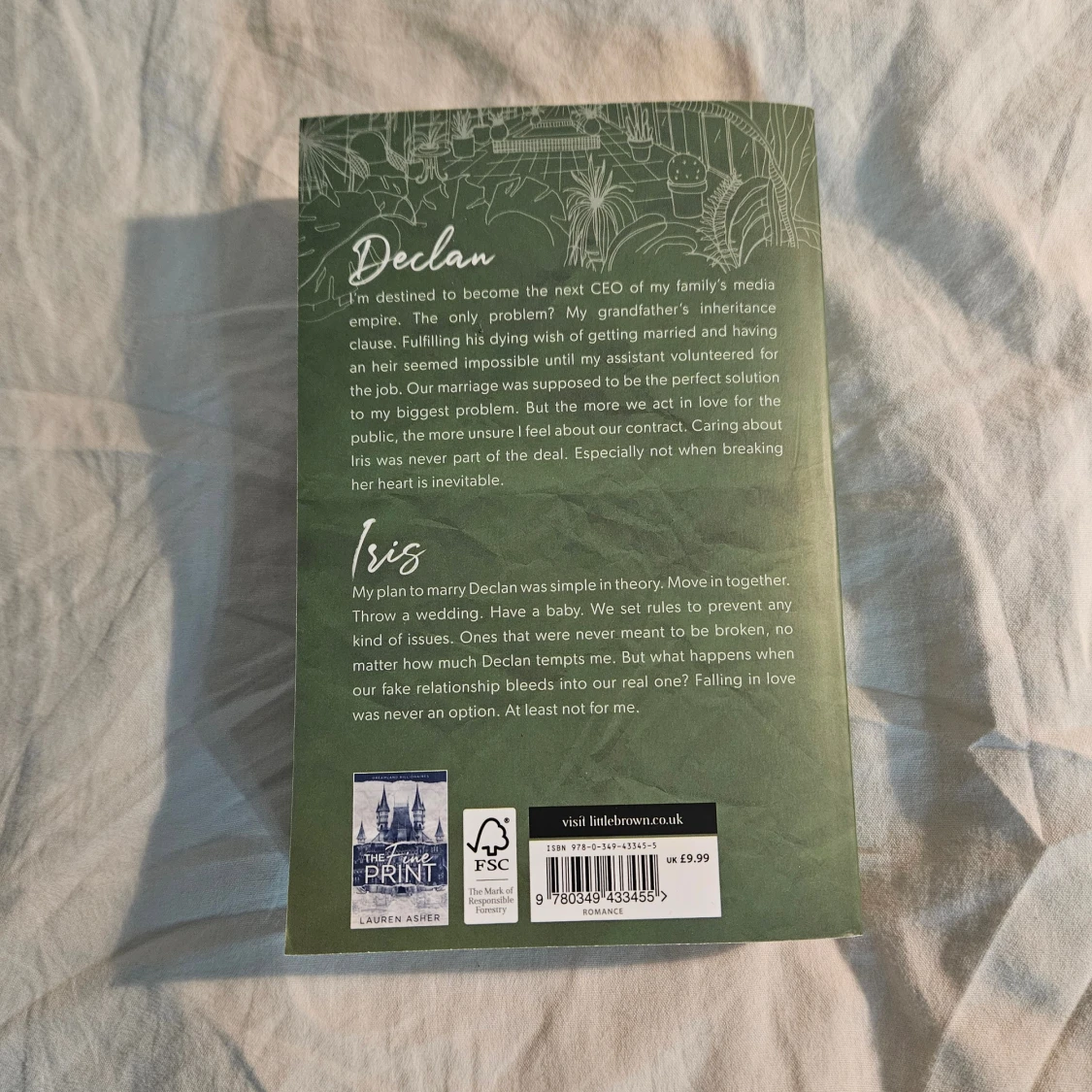 En modern och romantisk bok om Declan och Iris, dÀr ett kontrakt och en fejkad relation leder till ovÀntade kÀnslor. Perfekt för dig som gillar kÀrlek, drama och att följa karaktÀrer som utmanar bÄde sig sjÀlva och varandra. Nypris runt 150 kr. I mycket bra skick och endast lÀst en gÄng.