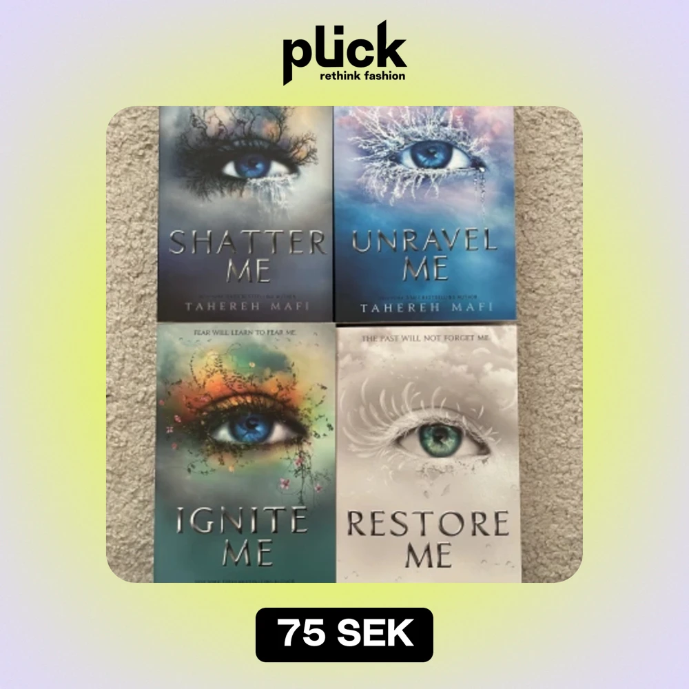 Fyra första böckerna i shatter me serien. Super känd på TikTok. Superbra skick, ser helt nya ut fortfarande. 75kr styck, 250kr för alla fyra🥂🙌