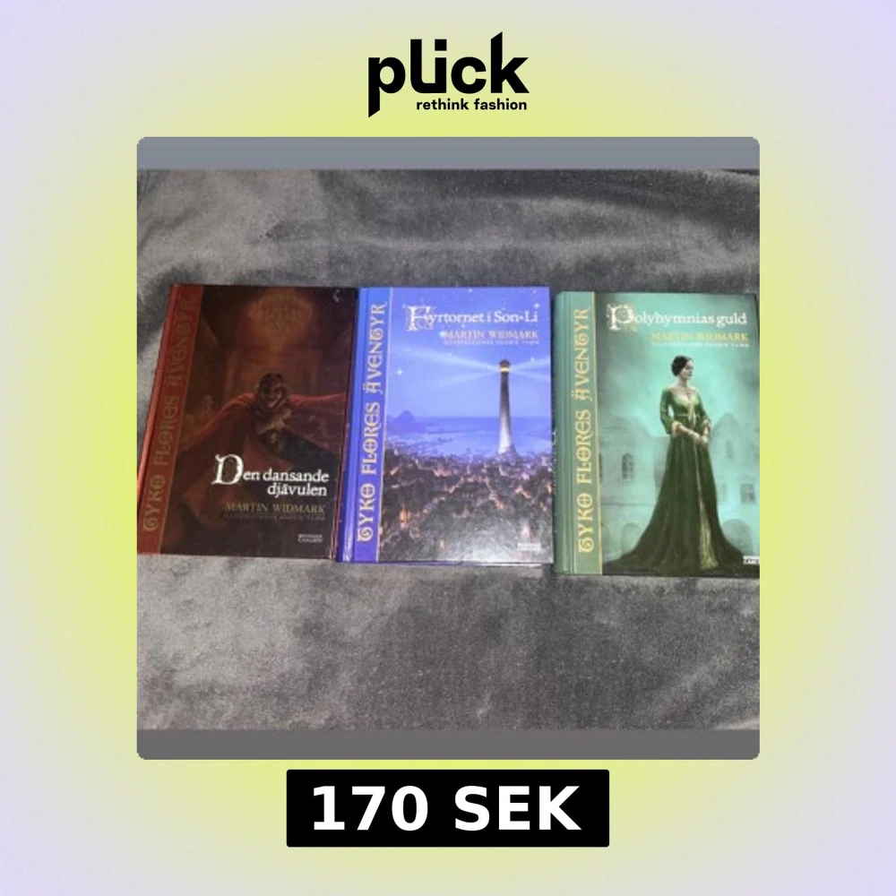 Trilogin Tyko Flores äventyr av Martin Widmark. Perfekt för dig som gillar äventyr, fantasy. Endast lästa en gång, alla tre böckerna är i toppenskick! Alla tre ingår i priset ☺️