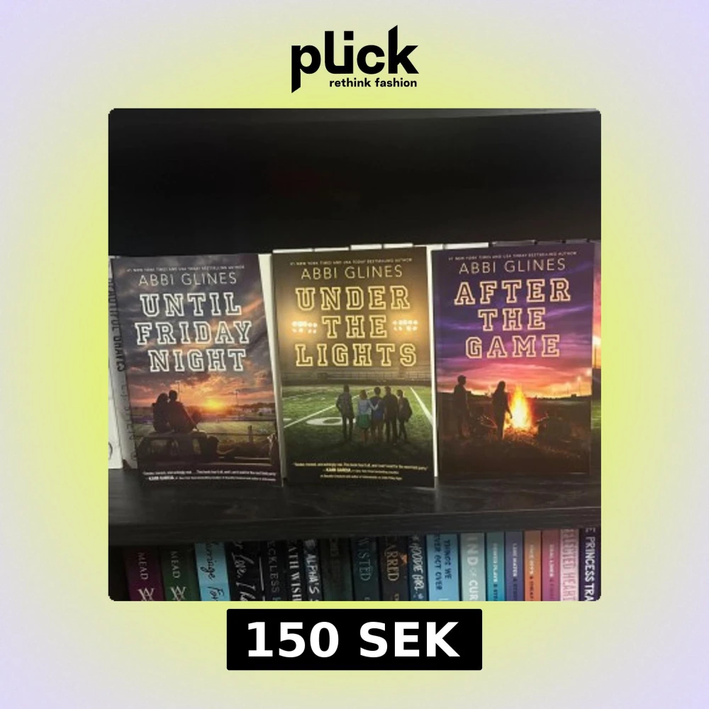 Tre böcker av Abbi Glines med ungdomar, sport och vänskap i fokus. Perfekt för dig som gillar berättelser om high school, relationer och livet kring amerikansk fotboll. Omslagen visar solnedgångar, sportfält och lägereldar – en riktig feelgood-serie för unga vuxna.