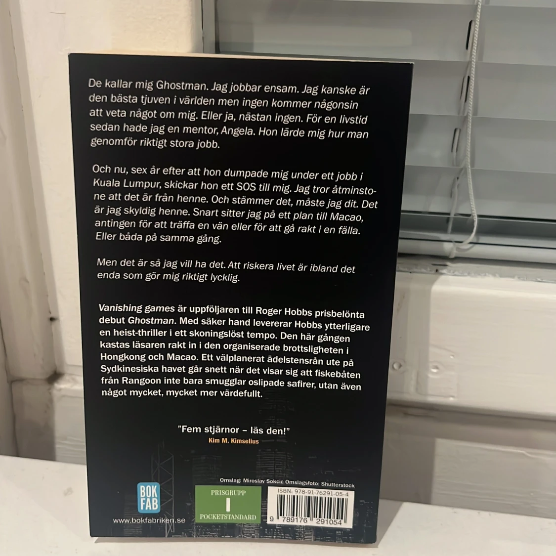 Vanishing Games är en fartfylld heist-thriller där Ghostman återvänder för ett nytt riskfyllt uppdrag. Boken utspelar sig i den undre världen i Hongkong och Macao, med organiserad brottslighet, ädelstenar och farliga fällor. Perfekt för dig som gillar spänning och action!