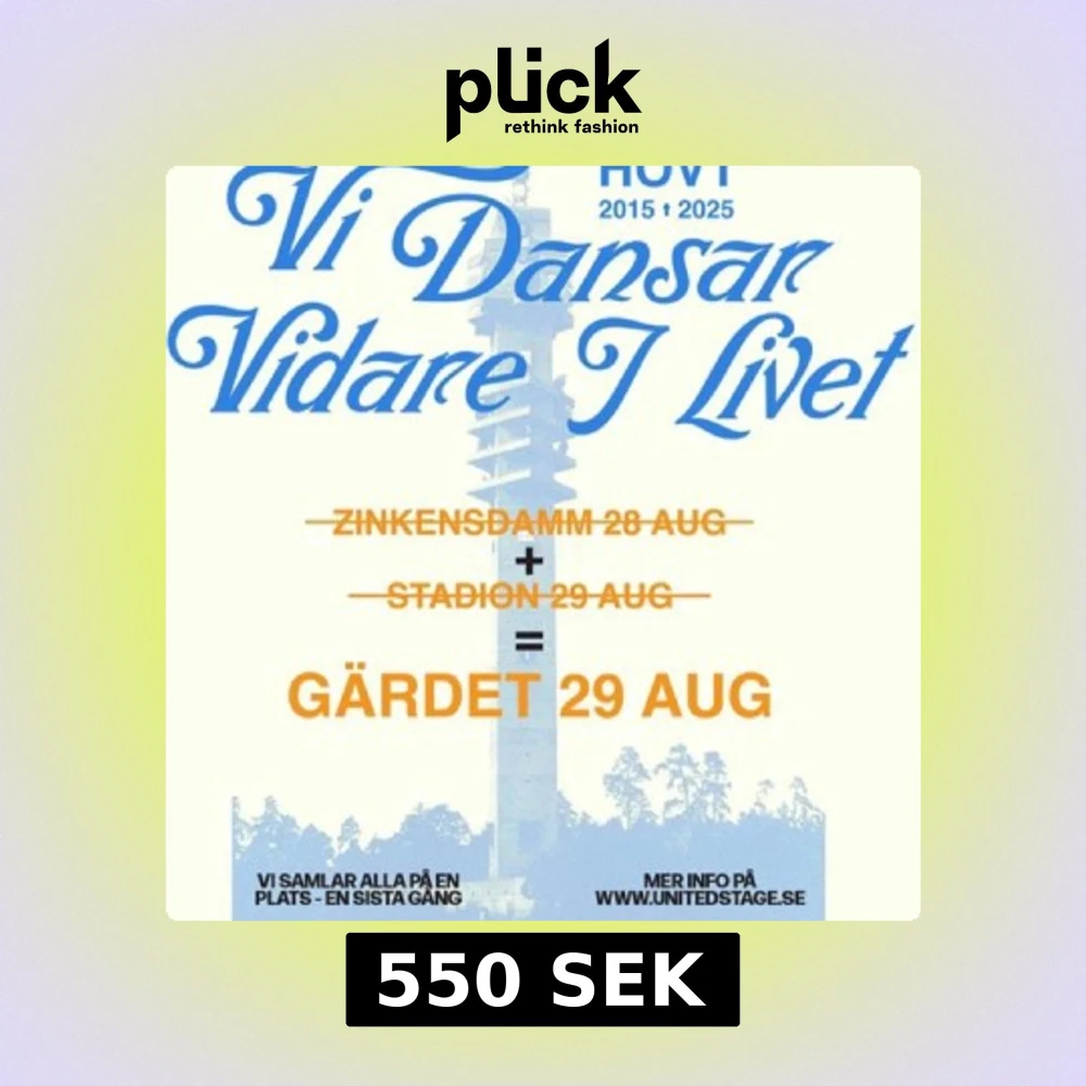 Konsertbiljett till Hov1 slutkonsert på Gärdet! Det är en ordinarie ståplats som är köpt på united tickets hemsida för 759 kronor men säljer billigare på grund av att det är redan imorgon!!! Hör av er vid frågor, priset går att diskutera!