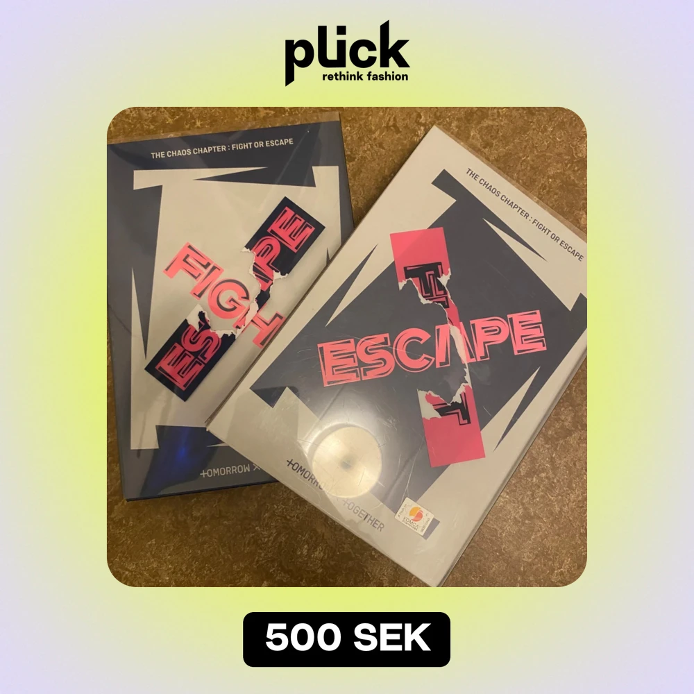 Säljer albumet 'The Chaos Chapter: Fight or Escape' med massor av coola tillbehör! Inkluderar CD, fotokort, klistermärken och affischer med färgglada och kreativa designer. Perfekt för fans av Tomorrow X Together. Albumet har en unik stil med rosa och blå teman och är i toppskick. Missa inte chansen att äga detta fantastiska samlarobjekt!