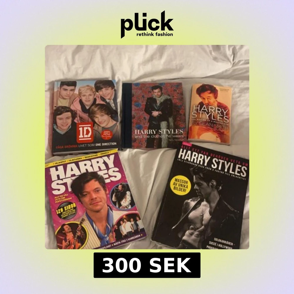 Ett paket med fem böcker om Harry Styles och One Direction. Inkluderar biografier, stilguider och fanböcker med massor av bilder och information om hans karriär och stil. Perfekt för fans som vill veta mer om hans liv och musik.