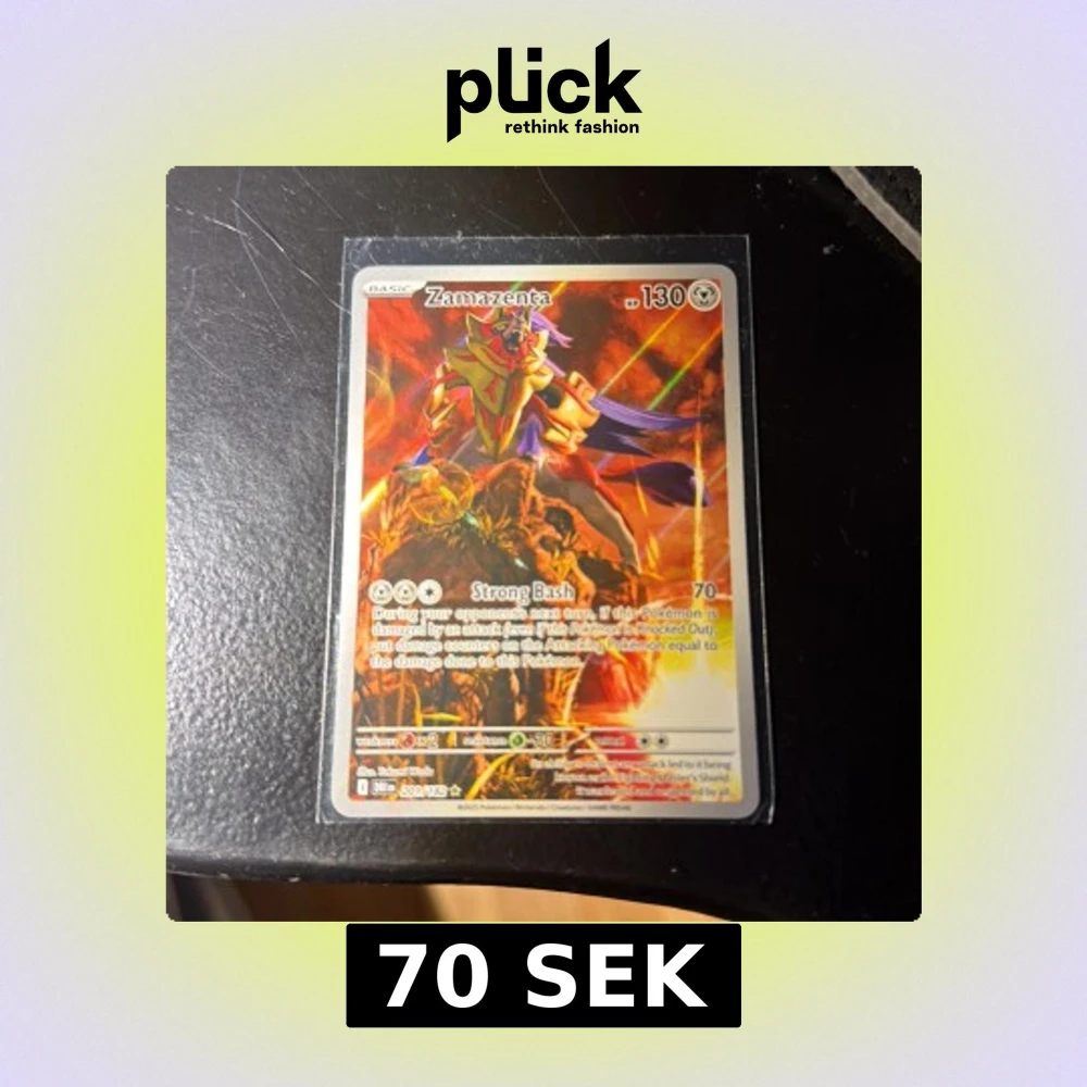 Coolt Pokémonkort med Zamazenta! Perfekt för samlare och fans av Pokémon TCG. Kortet har en episk illustration och är i fint skick, skyddat i plastficka. Ett måste för dig som vill stärka din samling eller spela med en legendarisk Pokémon.