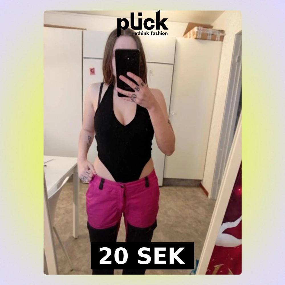 Säljer en svart body med halterneck och djup urringning. Bodyn har högt skurna ben och smala axelband som ger en snygg och modern look. Perfekt för dig som vill ha något stilrent och trendigt. Materialet ser ut att vara stretchigt och bekvämt.