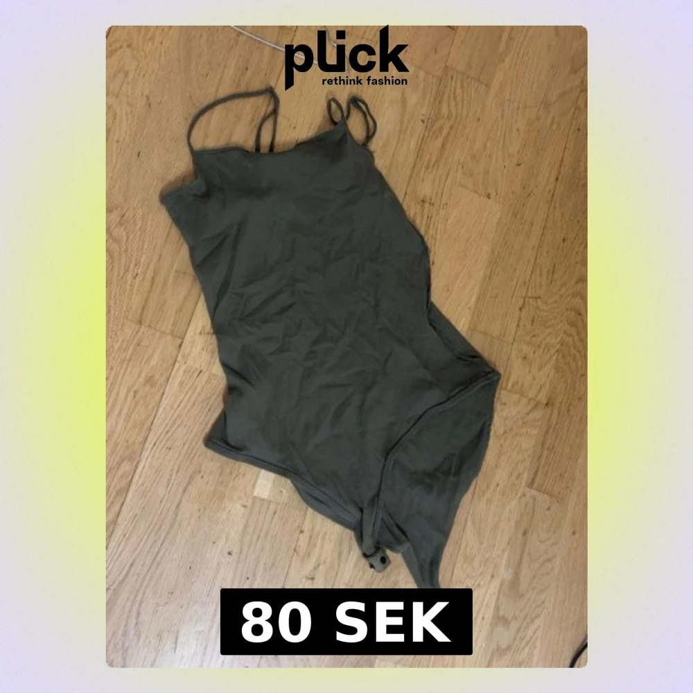 Snygg olivgrön body med smala axelband och tryckknappar i grenen. Enkel och stilren design, perfekt att matcha med jeans eller kjol. Tillverkad i mjukt stretchigt tyg för skön passform.