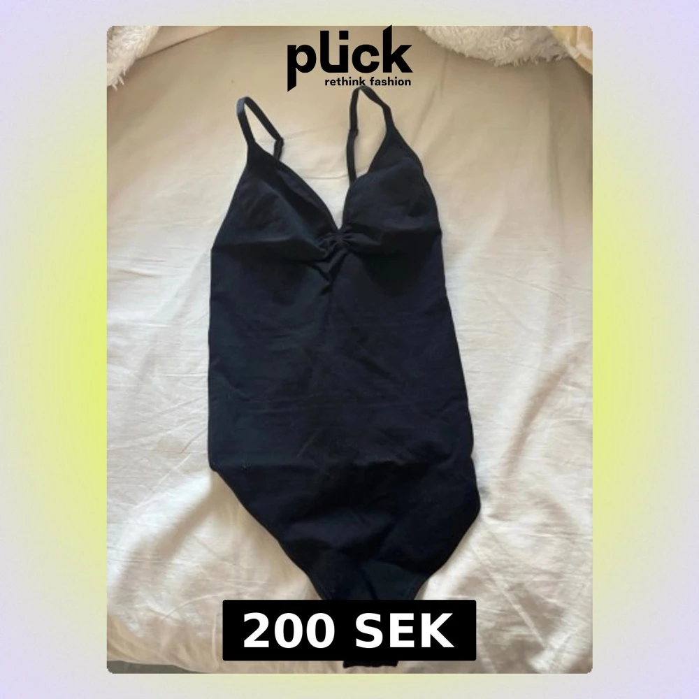 Snygg svart body med smala, justerbara axelband och lätt rynkning vid bysten. Tillverkad i mjukt stretchigt material för skön passform. Perfekt att styla under skjortor eller tröjor för en clean look.