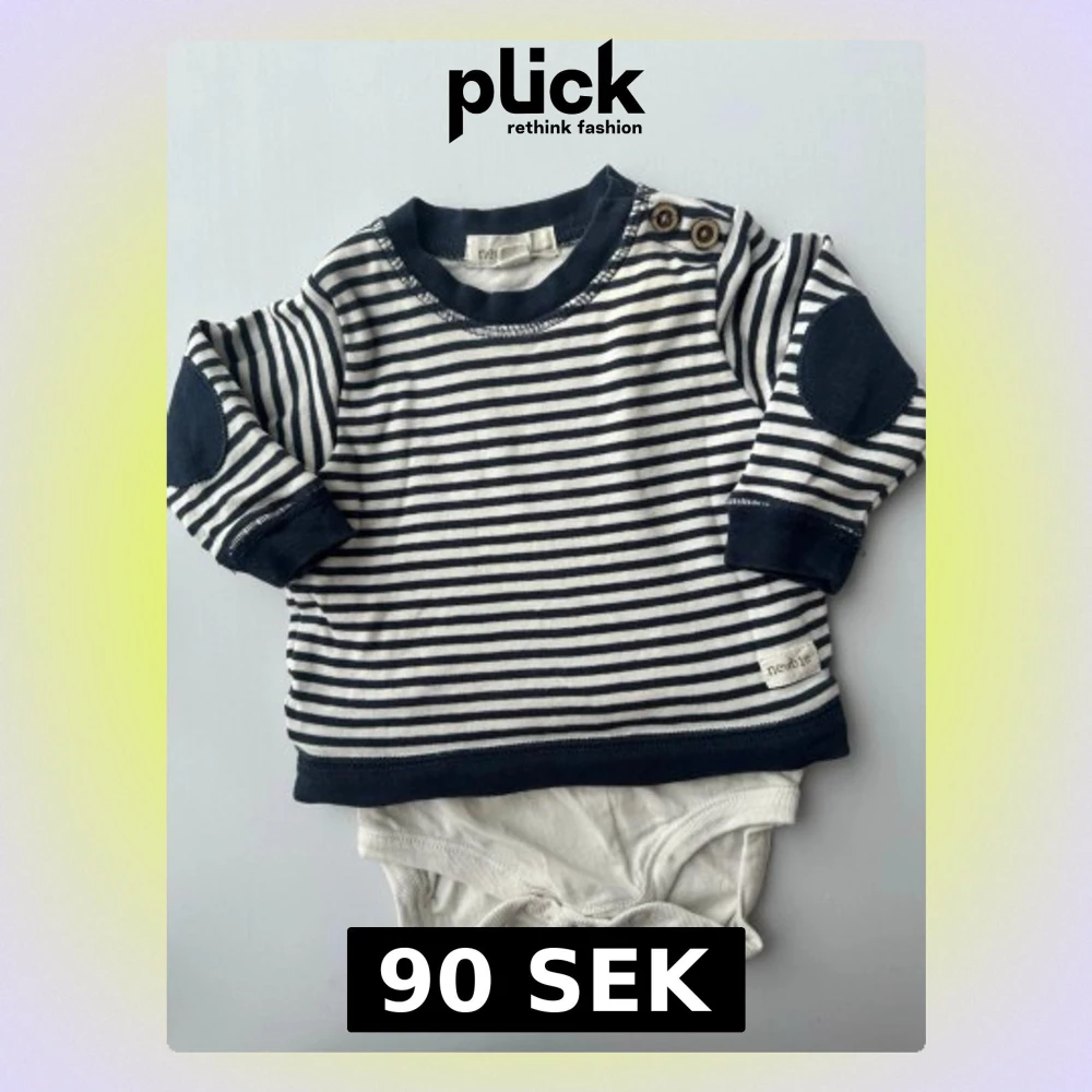 Söt långärmad body från Newbie i marinblått och vitt med smala ränder. Bodyn har mörkblå muddar, knappar på axeln och förstärkta armbågar. Tillverkad i mjuk bomull, perfekt för en bekväm och stilren look.
