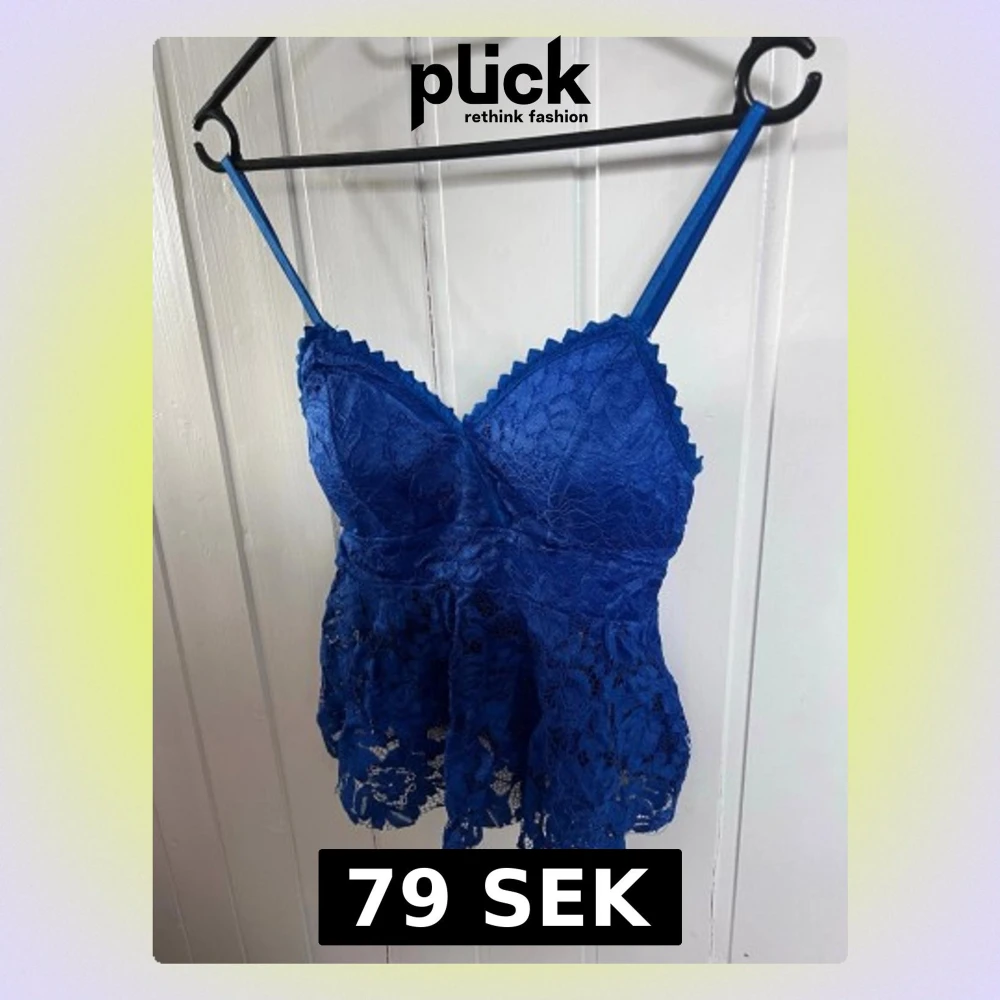 Blå spetsblus med smala axelband