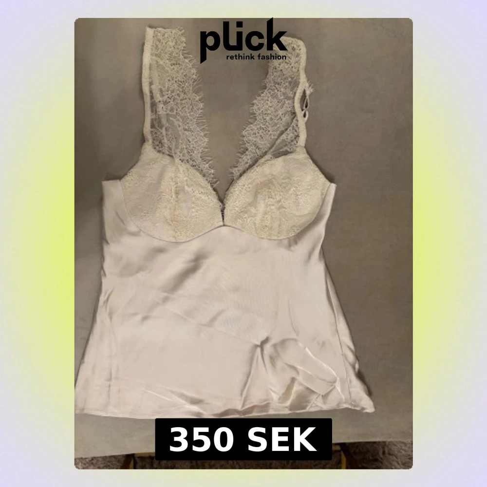 Snygg vit linnetopp med spetsdetaljer vid axelbanden och kuporna. Tillverkad i ett glansigt, silkesliknande material som ger en lyxig känsla. Perfekt att styla med jeans eller kjol för en trendig look.