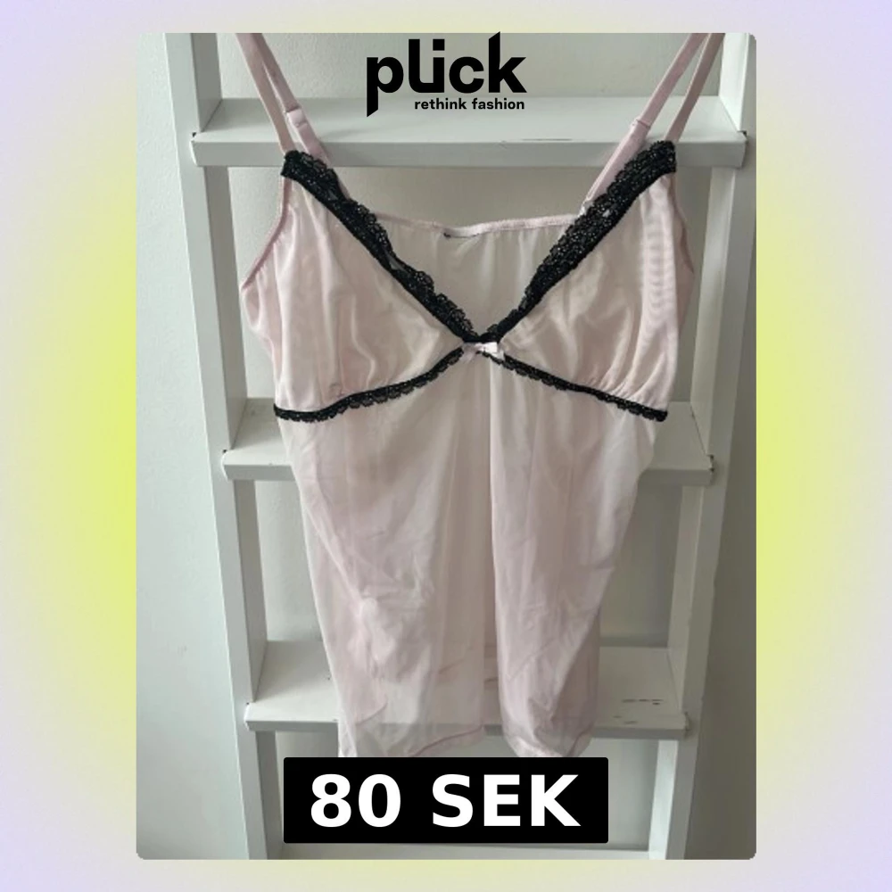Ljusrosa nattlinne med svart spets