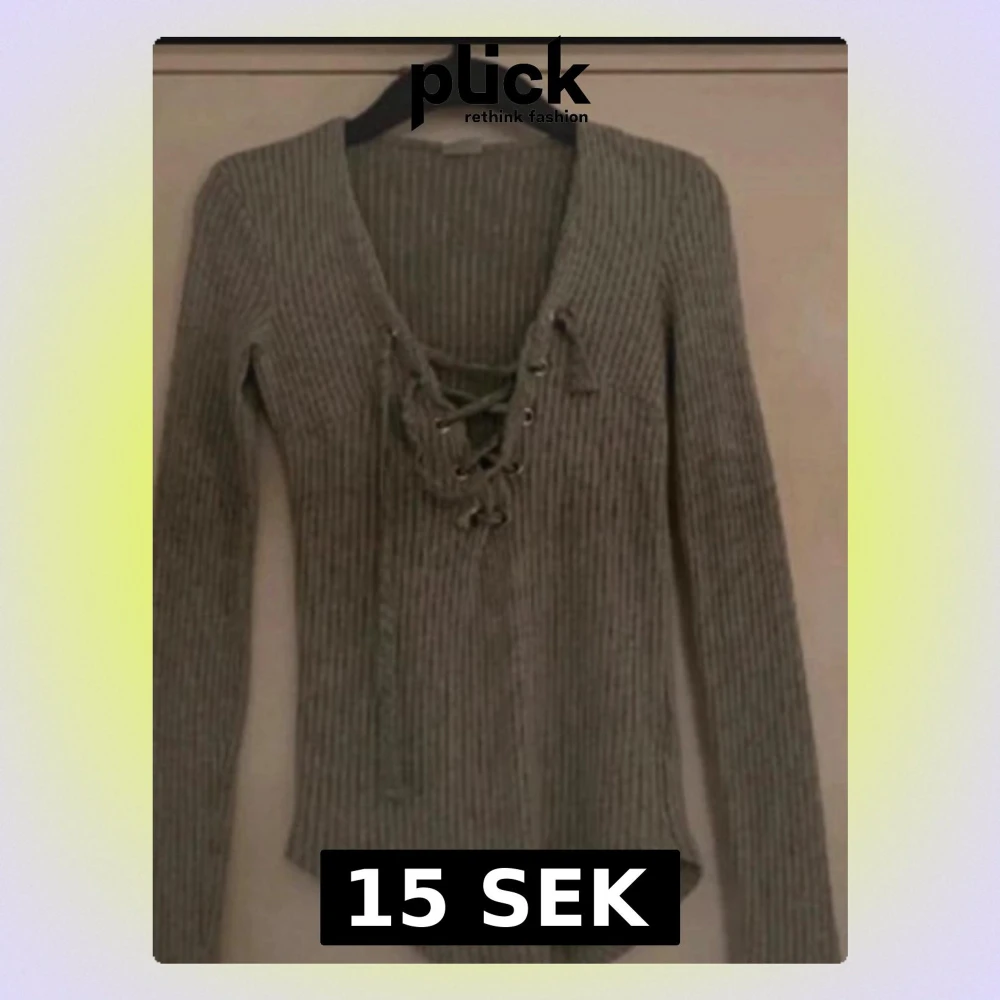 Snygg ribbad tröja i grått med långa ärmar och djup v-ringning framtill.
