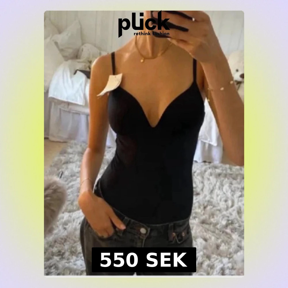 Snygg svart shaping-body med tunna axelband och vadderade kupor. Djup urringning framtill och sömlös design som ger en smickrande siluett. Perfekt att bära under kläder för en slät look. Materialet är stretchigt och följsamt.