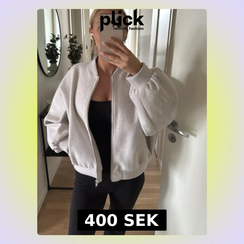 Säljer en ljusbeige/vit bomberjacka i oversized modell med breda ärmar och ribbade muddar vid ärmslut och nederkant. Jackan har dragkedja framtill och en mjuk, borstad yta som ger en chill och trendig look. Perfekt för dig som gillar en avslappnad stil. En liten fläck på armen som syns på sista bilder. Knappt använd.