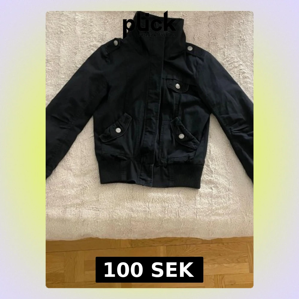 Snygg jacka med hög krage och ribbade muddar. Jackan har två framfickor med lock och tryckknappar samt en extra ficka på bröstet. Klassisk kort modell med axelklaffar och detaljer i metall. Perfekt för dig som vill ha en stilren och cool look.