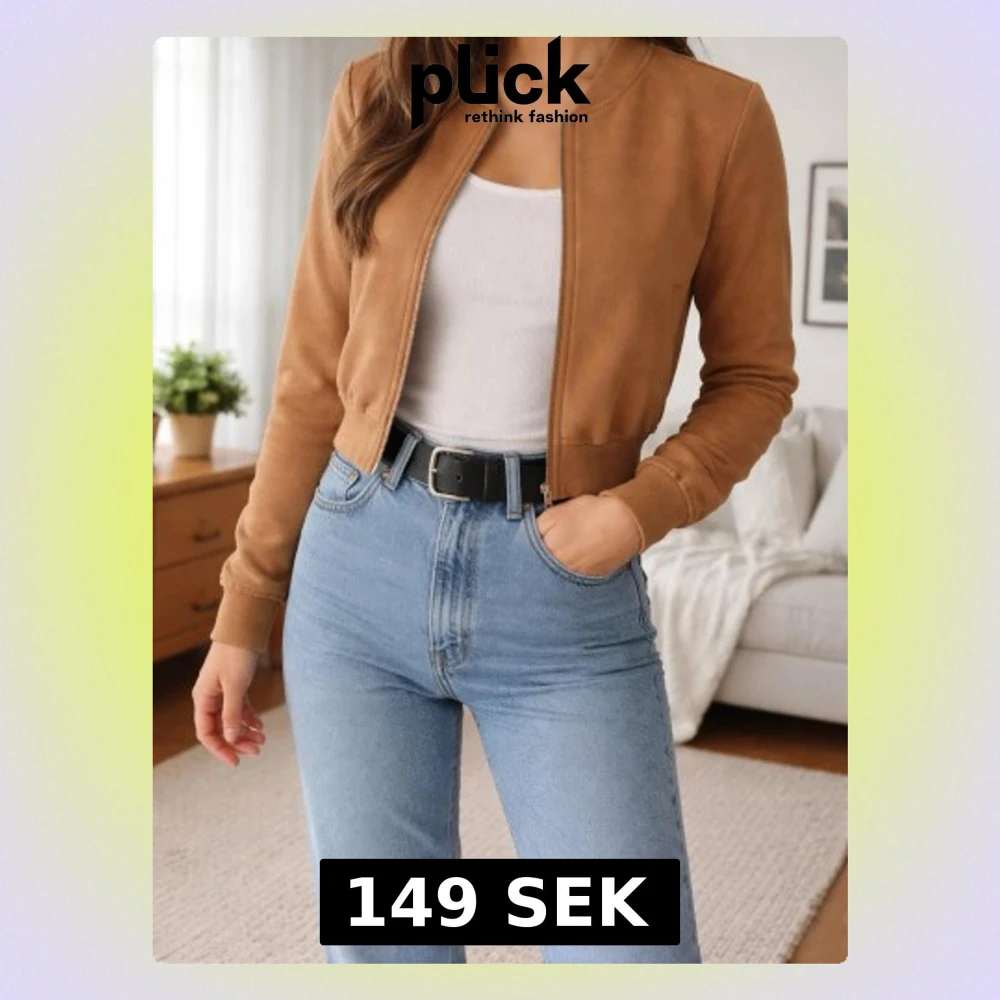 Snygg brun bomberjacka från H&M i kort modell med dragkedja framtill. Jackan har rundad krage, ribbade muddar och är tillverkad i ett mjukt tyg som ger en avslappnad look. Perfekt att matcha med jeans och t-shirt för en trendig stil.