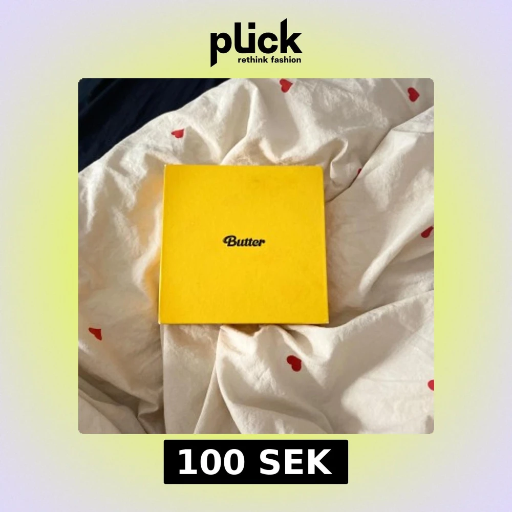 BTS - 'Butter' album - Säljer BTS albumet 'Butter'. Inuti finns en CD, fotobok, fotokort och andra samlarobjekt. Perfekt för fans av kpopmusik men framförallt BTS. Lådan är i bra skick och har en stilren design. 🎶💛