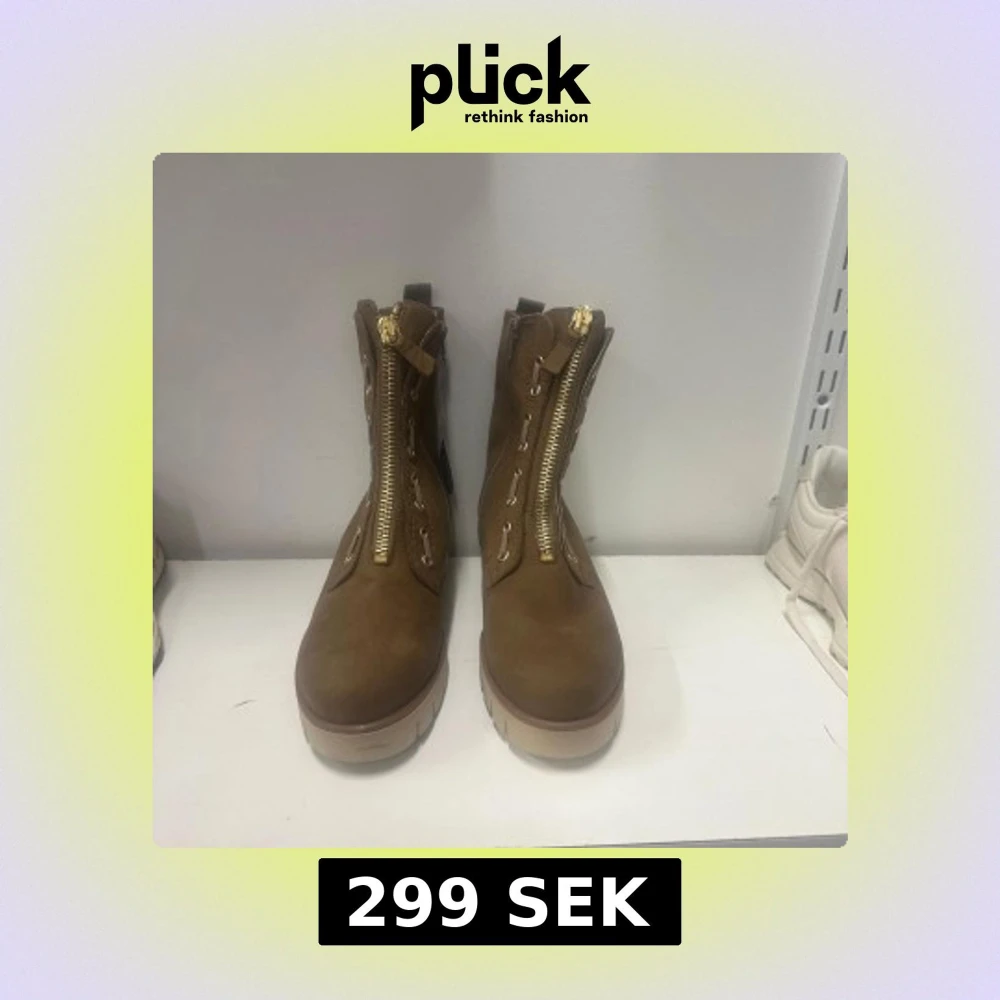 Snygga bruna boots från gabor i mockaimitation med grov beige sula och guldfärgade dragkedjor framtill. Bootsens höga skaft och robusta design ger en cool look. Perfekta för dig som vill ha både stil och edge i din outfit.