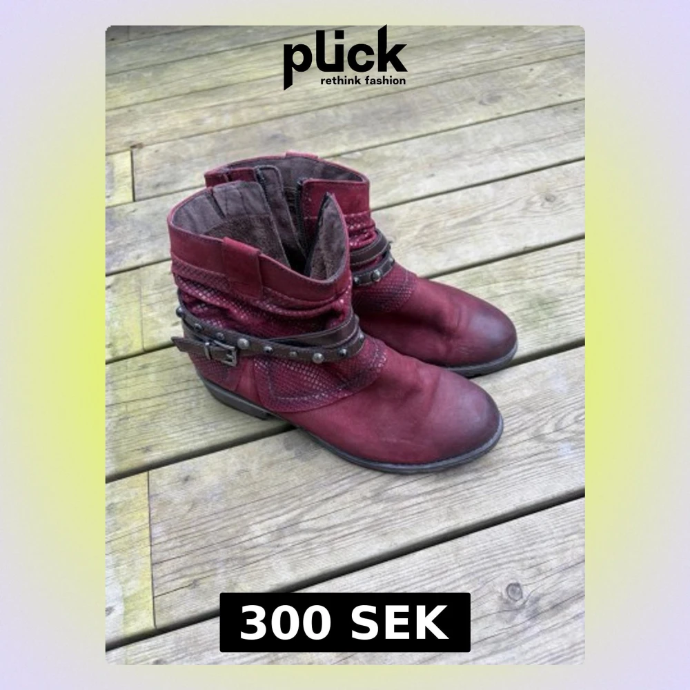Snygga vinröda boots från Tamaris med coola detaljer som spännen och nitar runt ankeln. Ovandelen har en mix av slätt och mönstrat material, och insidan är fodrad med mjukt tyg för extra komfort. Perfekta för dig som vill sticka ut med din stil.