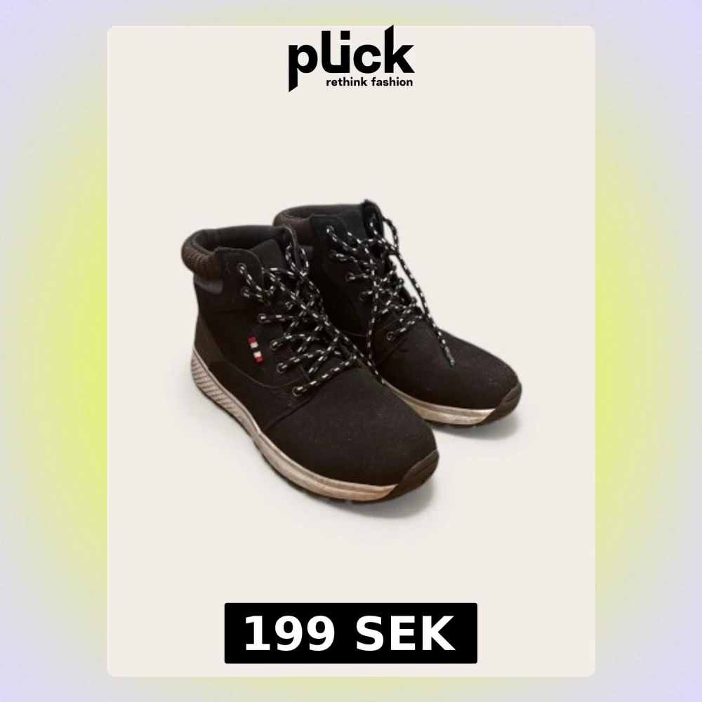 Säljer ett par svarta vardagsskor från Jack & Jones i storlek 41. Rejäl modell som fungerar bra till vardags, med snörning och vit sula. Skick: Fint skick!. Skorna är använda men har fortfarande extremt mycket kvar att ge! Kommer från ett rök- och djurfritt hem. Pris: 199 kr. Finns i Bromma. Snabb och smidig affär prioriteras.