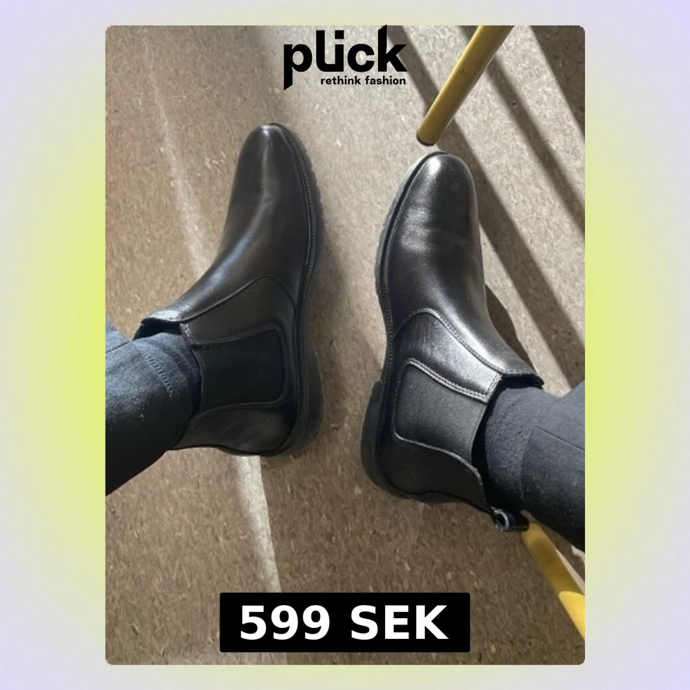 Säljer ett par klassiska svarta stövletter i slätt läder med rund tå och låg klack. Skorna har en enkel och stilren design som passar till många olika outfits. Perfekt för dig som gillar tidlösa boots.