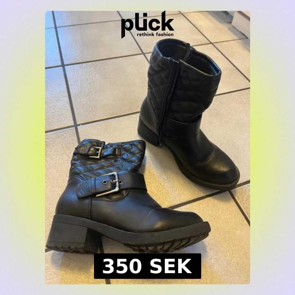 Snygga svarta stövletter i konstläder med quiltad ovandel och två dekorativa spännen. Dragkedja på insidan för enkel påtagning och grov sula för extra grepp. Perfekta för dig som vill ha en edgy look till hösten.