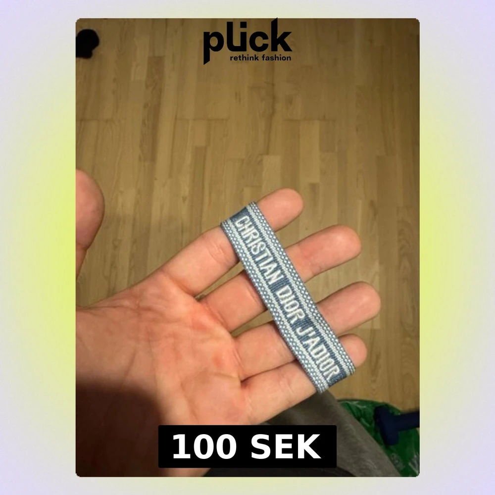 Snyggt blått och vitt tygarmband från Christian Dior med texten 'J'Adior'. Armbandet har en vävd design och avslutas med tofsar i ändarna. Perfekt accessoar för dig som vill ha en exklusiv och trendig detalj till din outfit.