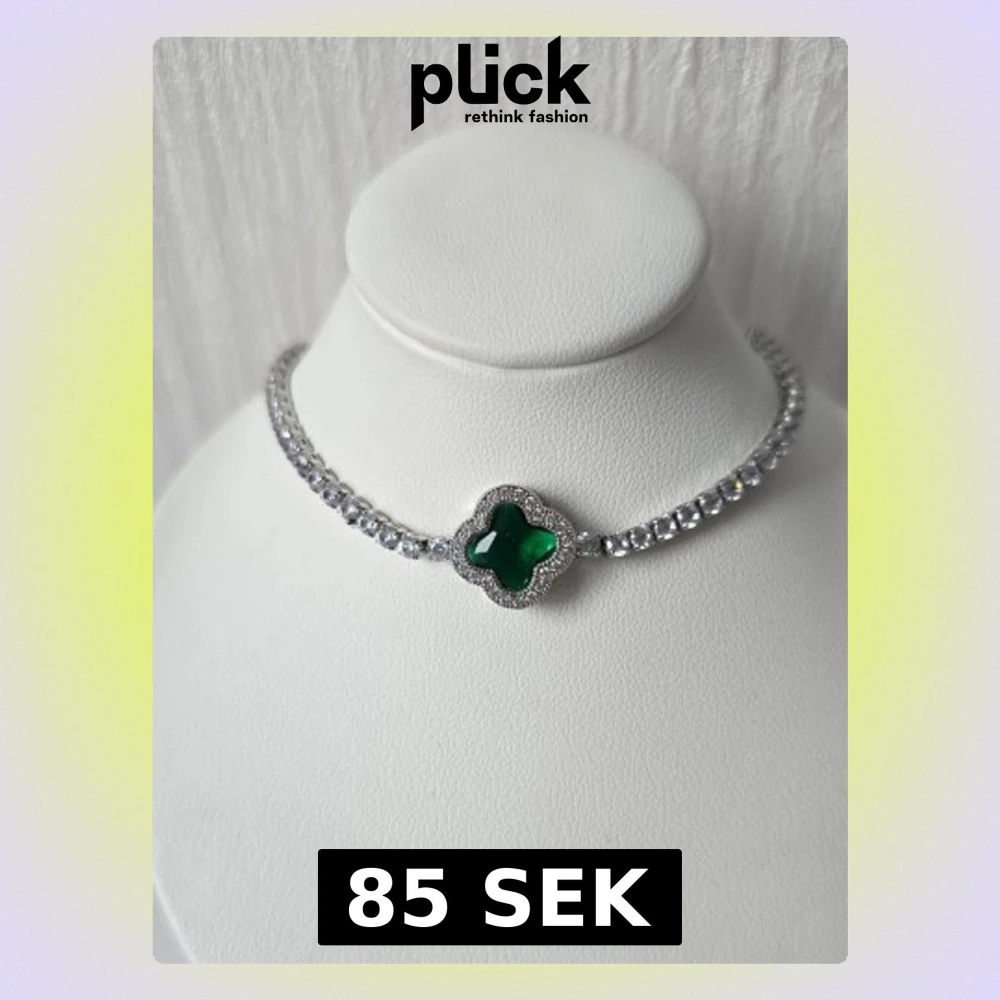 Snyggt armband i silverfärg med gnistrande stenar och en grön fyrklöverformad detalj i mitten. Armbandet har en klassisk tennisdesign de tätt sittande stenarna och ett smidigt spänne. Perfekt för dig som gillar stilrena accessoarer med en sop touch. Justerbar i storlek, finns även i andra färger