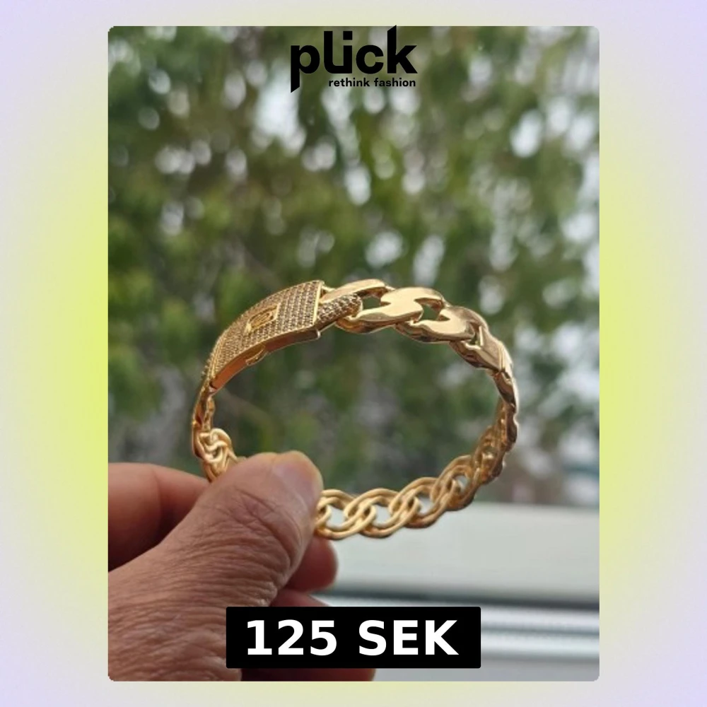 Snyggt armband i guldfärgad metall med en chunky kedjedesign och en unik låsdetalj framtill. Armbandet har en flätad struktur på ena sidan och bredare länkar på andra, vilket ger en cool och modern look. Perfekt accessoar för att lyfta din outfit. Kopar