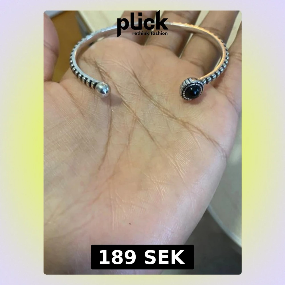 Snyggt öppet armband i äkta silver (925) med en svart pärldetalj på ena sidan och en silverfärgad pärla på andra. Armbandet har en stilren design med räfflad struktur längs bandet. Perfekt accessoar för att lyfta din outfit. main material: s925 sterling silver pläterat