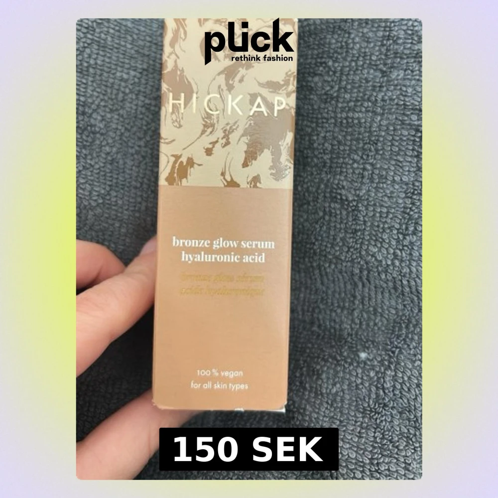 Bronze Glow Serum från Hickap med hyaluronsyra. Kommer i en snygg brun och beige förpackning med guldiga detaljer. Serumet är 100% veganskt och passar alla hudtyper. Perfekt för dig som vill ha en naturlig solkysst look. Oanvänd