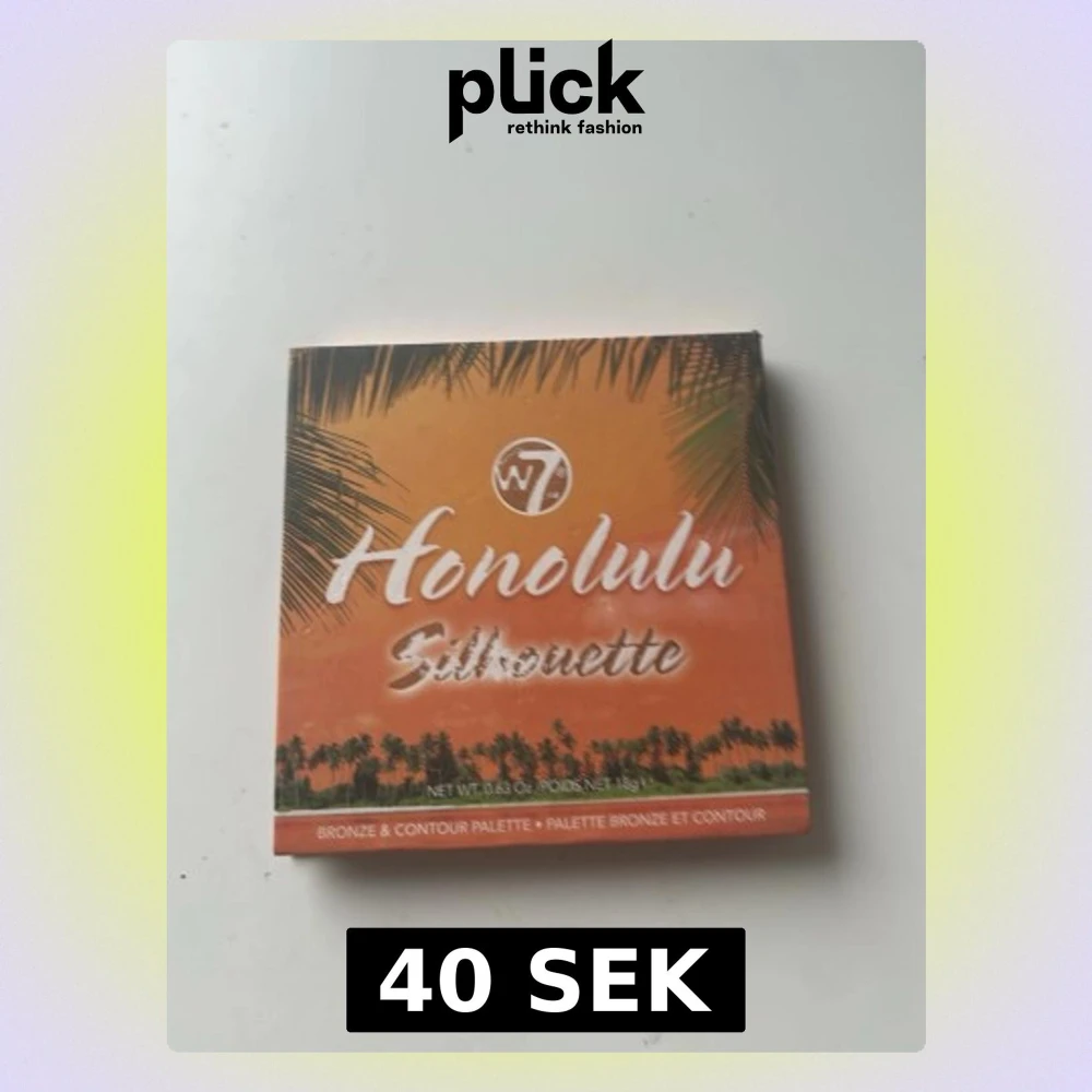 Snygg bronzer- och contourpalett från W7 med fyra olika nyanser i varma bruna och beige toner. Kommer i en fyrkantig förpackning med tropiskt motiv och spegel på insidan. Perfekt för att skapa solkysst look och definiera ansiktet.