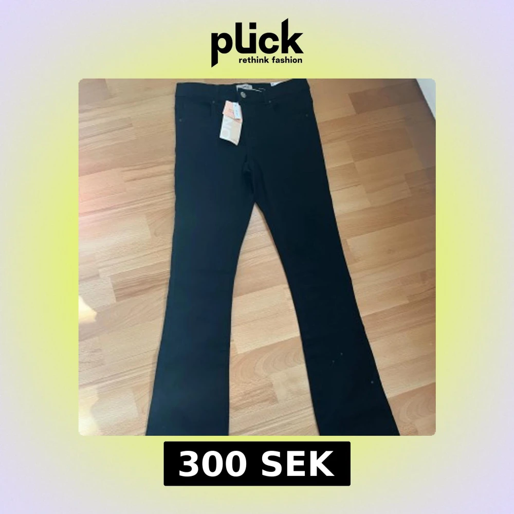 Jag tänker sälja mina svarta lågmidjade flared jeans ifrån ONLY. De är väldigt stretchiga också. Jeansen är helt nya med prislapp och bara testad 1 gång. Jag säljer jeansen för att de var lite för stora för mig. Jag är 160 och jeansen är lite långa på mig. Jag tänker sälja jeansen för 300 kr men pris kan alltid diskusseras. Ordinarie pris på jeansen är 400kr.