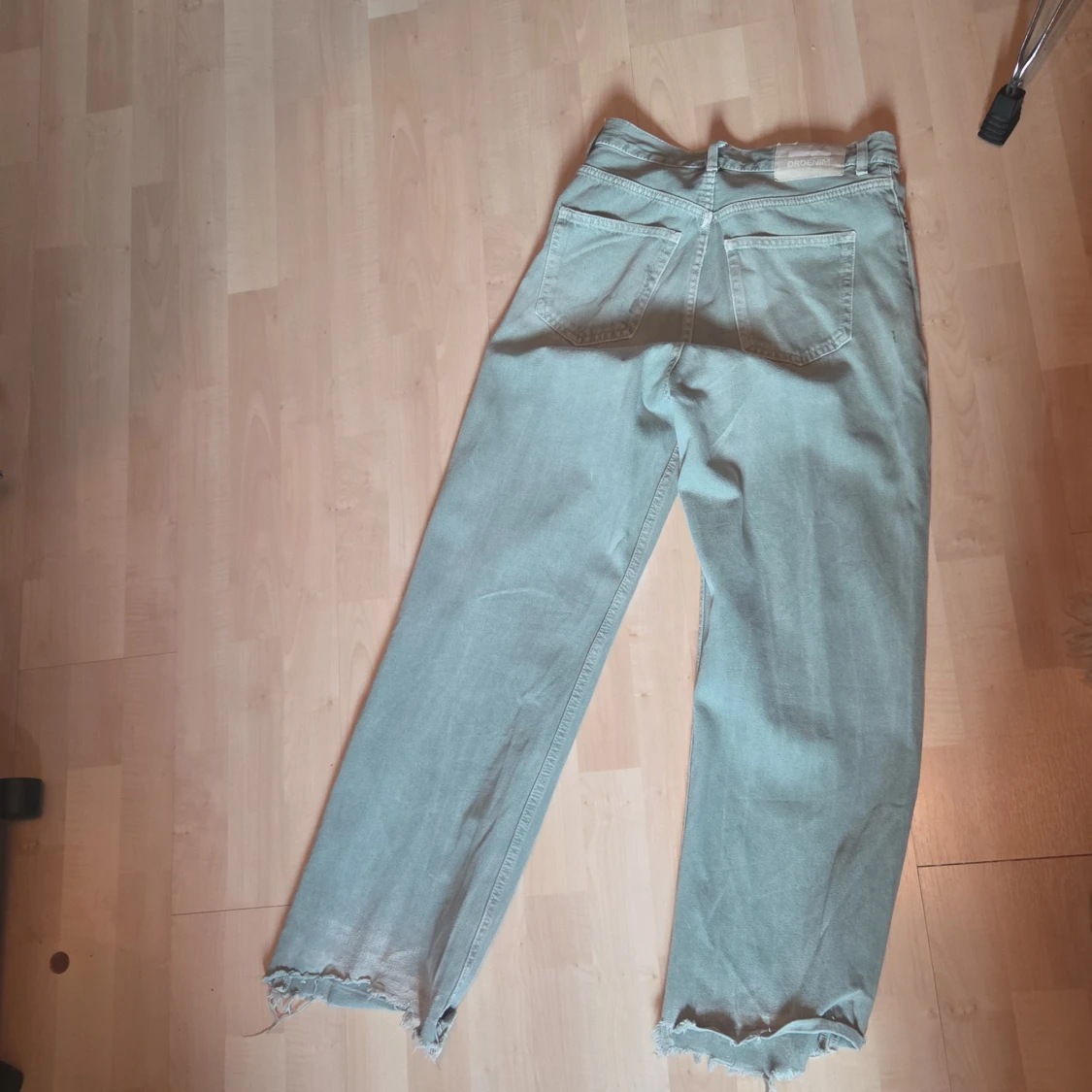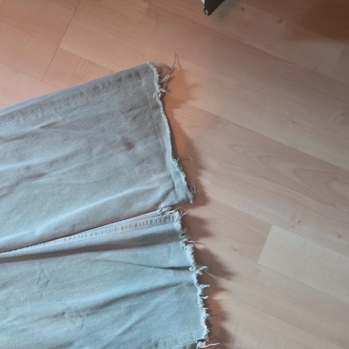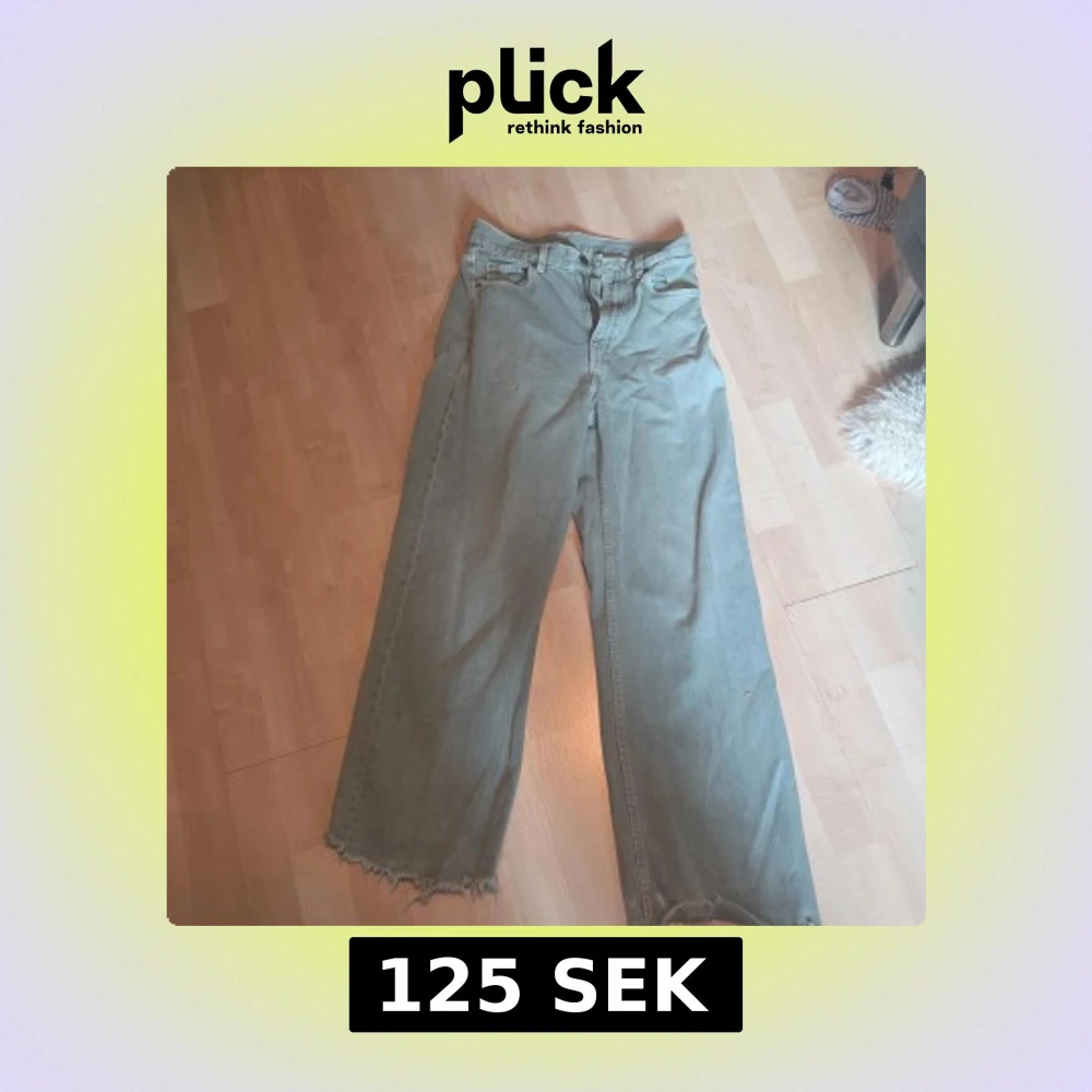 Säljer ett par gråa jeans från Only i modell med breda ben och råa, fransiga benslut. Jeansen har klassisk femficksdesign och stängs med dragkedja och knapp. Perfekta för dig som gillar en avslappnad och trendig look.