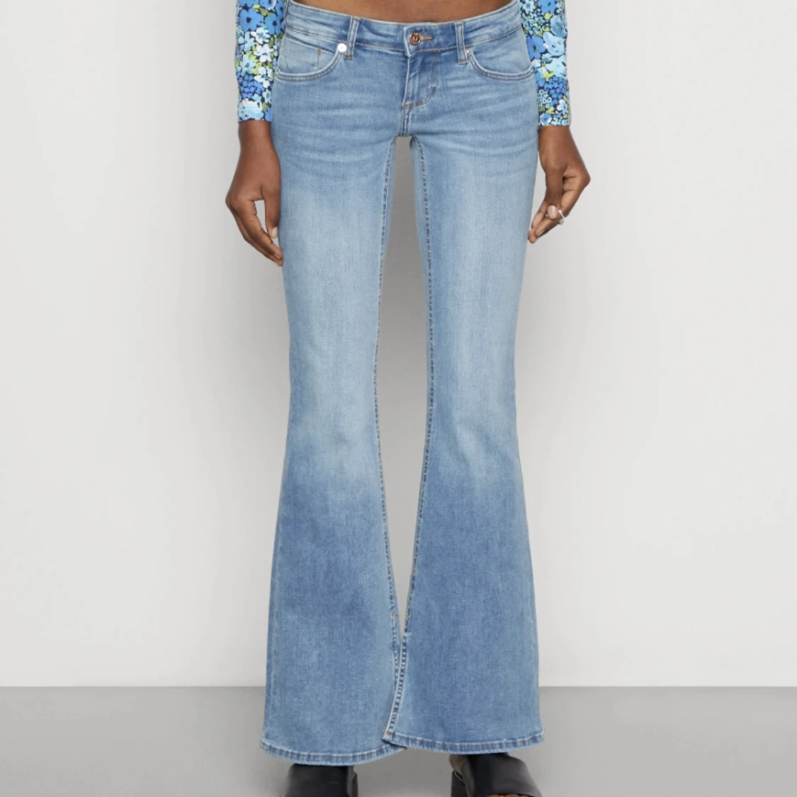 Jätte snygga lowwaist bootcut jeans som är helt slutsålda som jag inte får på mig med lapparnq kvqr❤️ dem är 30 i längden💗 dem har super snygga slits där nere men om man inte gillar dem är det jätte enkelt att bara sy ihop!💖